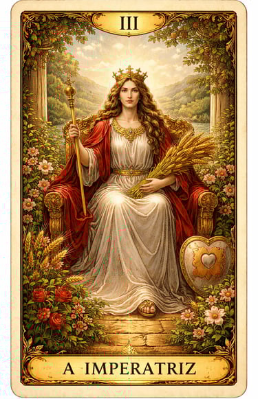 A carta A Imperatriz é um dos arcanos mais luminosos e abundantes do Tarot. Ela representa fertilidade, criatividade, crescimento e a energia da vida em expansão.