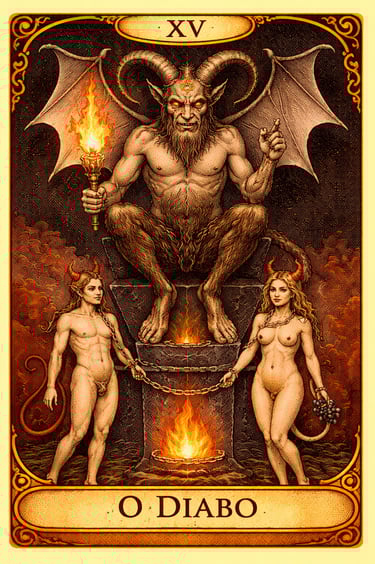 A carta O Diabo é uma das mais intensas e provocativas do Tarot. Ela está associada a desejos, ilusões, dependências e padrões que podem aprisionar a consciência.