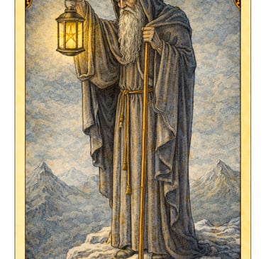 No Tarot, o Eremita é o arquétipo do sábio, daquele que se afasta do barulho do mundo para acessar conhecimento e clareza interior.