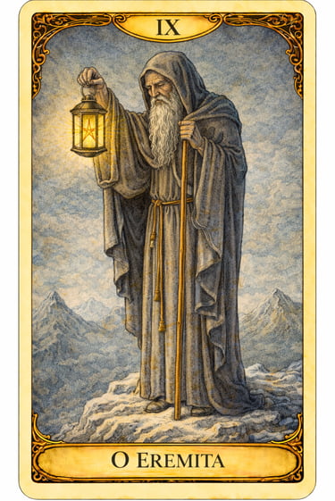 A carta O Eremita é um dos arcanos mais profundos e introspectivos do Tarot. Ela representa sabedoria interior, busca espiritual e momentos de reflexão necessários para compreender a própria jornada.