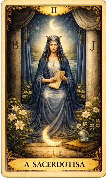 A carta A Sacerdotisa representa sabedoria interior, intuição e conexão com o mistério da vida.